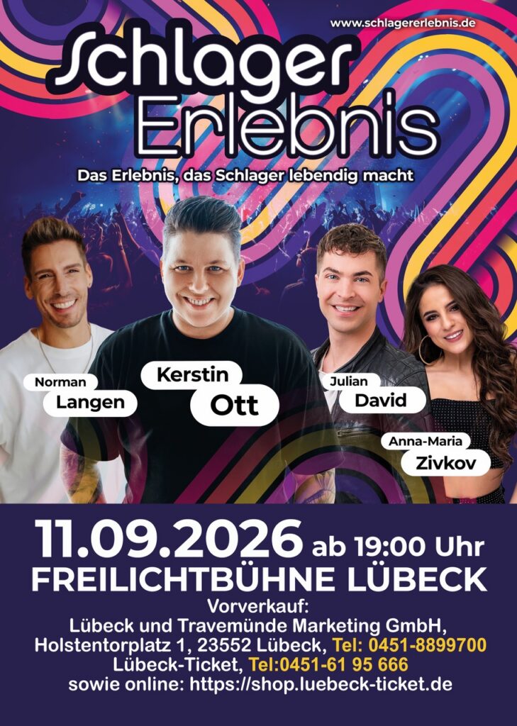 11.09.2026 | SCHLAGERERLEBNIS DIE SCHLAGERNACHT mit KERSTIN OTT * NORMAN LANGEN * MARIA ZIVKOV * JULIAN DAVID DIE Schlagernacht der Superlative startet 2026. Und als […]